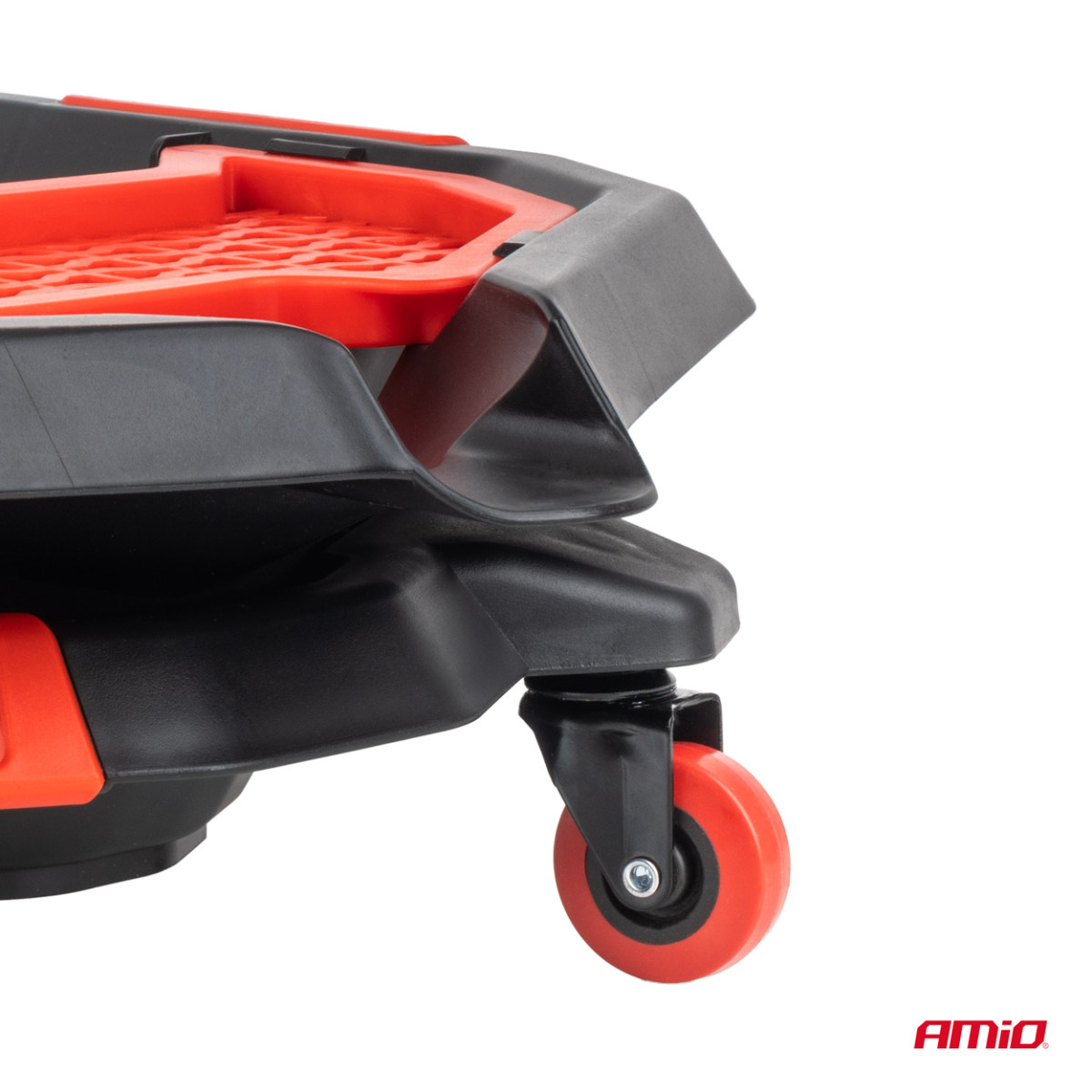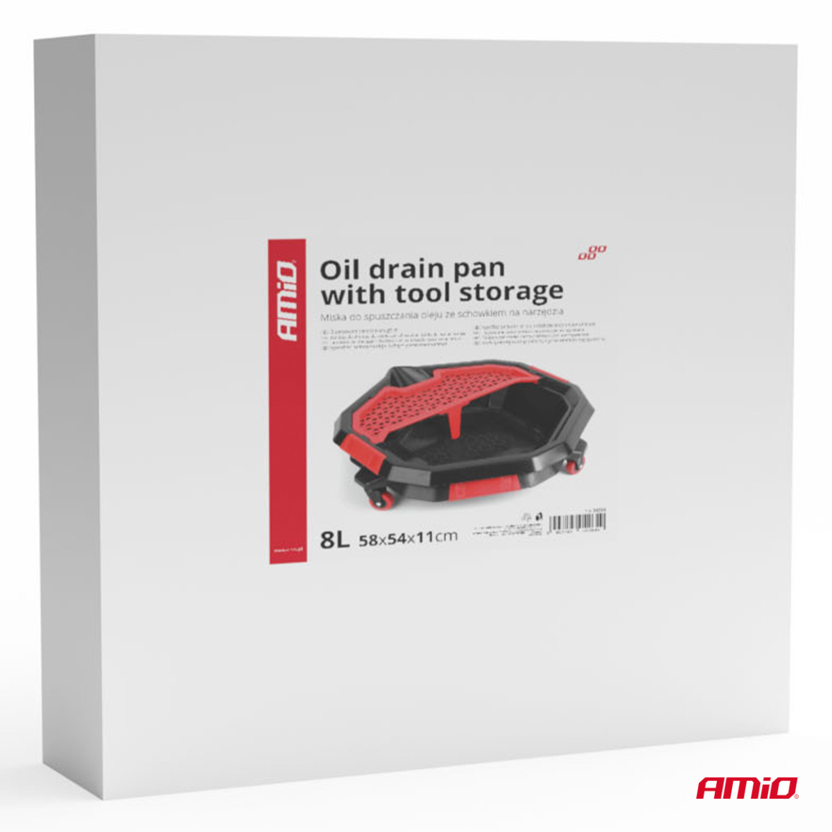 Paspartinkite ir palengvinkite darbą su praktiška alyvos išleidimo talpa su ratukais ir įrankių dėtuve!