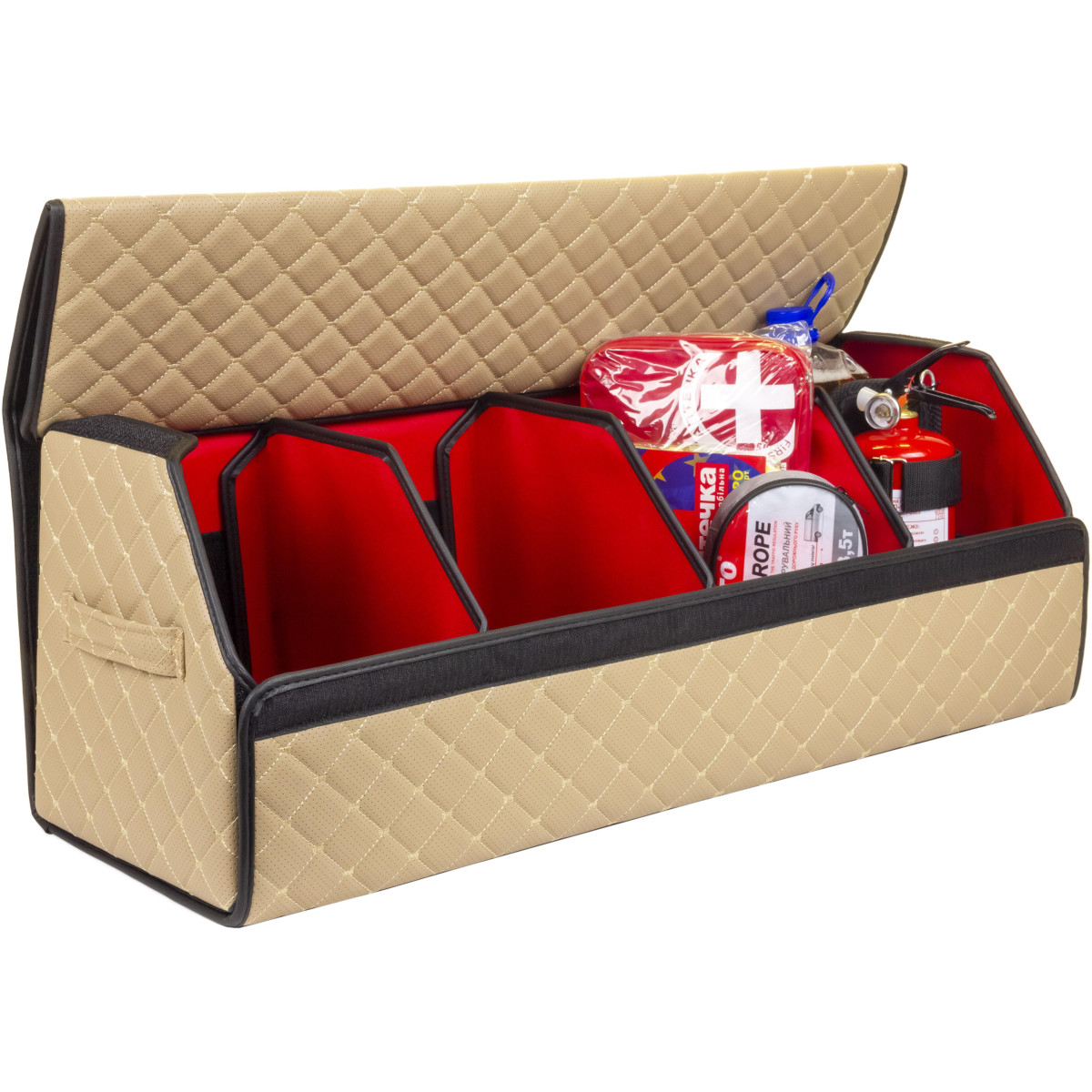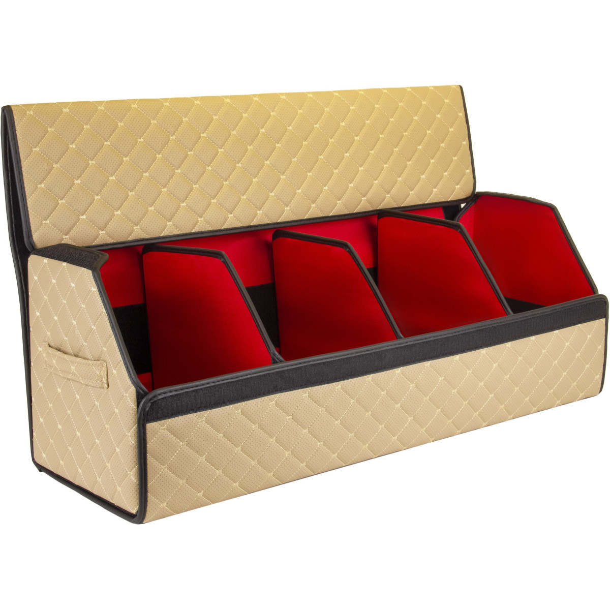 Bagažinės daiktadėžė EVAtech ECO XL 30x30x80 cm - smėlio / juodi kraštai / smėlio siūlės / raudonas vidus