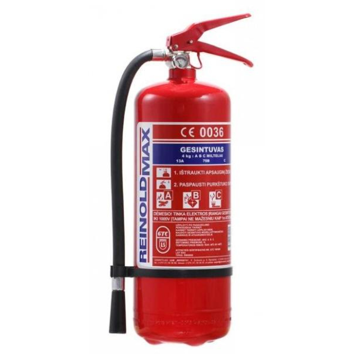 4 kg nuolatinio slėgio ABC miltelių gesintuvas su manometru. Universalaus poveikio, rekomenduojamas naudoti sunkvežimiuose, kombainuose, gamybinėse ir sandėliavimo patalpose, garažuose ir pan.