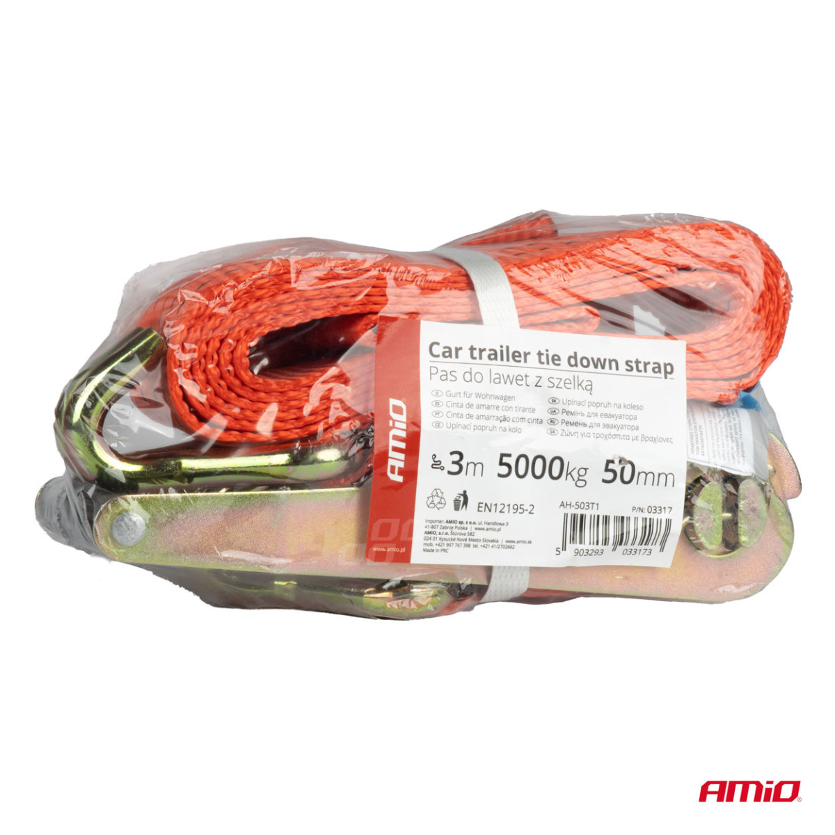 Krovinių tvirtinimo diržas su įtempikliu ir atrama 5000 kg, 3 m x 50 mm, AMIO-03317