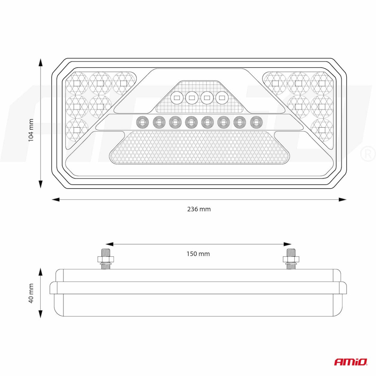 Dinaminis posūkis – tai šviesos efektas, kuriuo šviesos spindulys „keliauja“ posūkio kryptimi, kai kiekviena dioda įsijungia šiek tiek vėliau. Lempą galima naudoti tiek 12V, tiek 24V sistemose, ji turi elektromagnetinio suderinamumo homologaciją ir IP67 apsaugos klasę. Tikriausiai tai viena gražiausių galinių lempų rinkoje.
