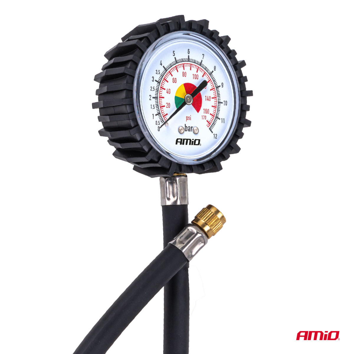 Mechaninis manometras su 30 cm žarna, 12 bar, AMIO-04468