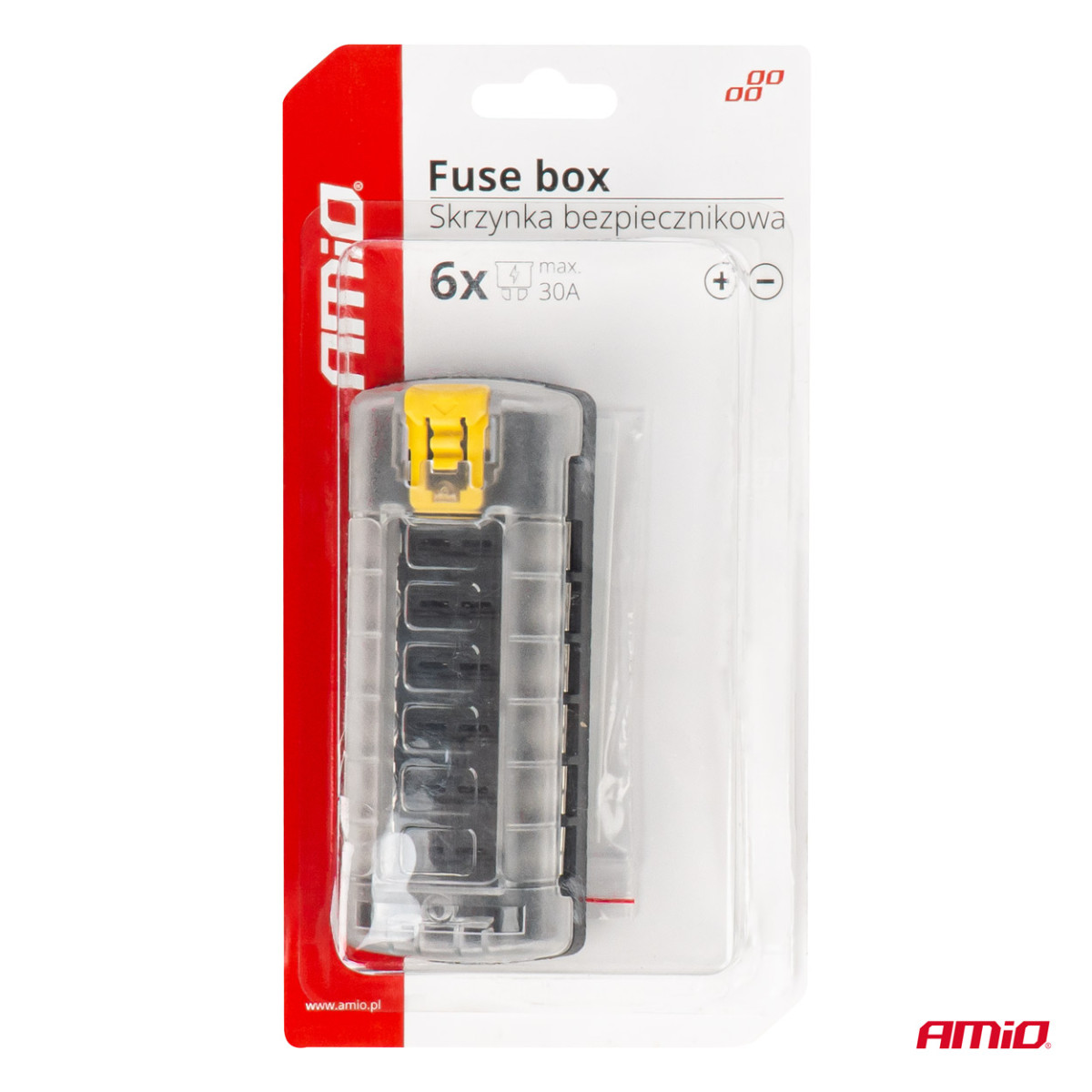 Saugiklių dėžutė, 6 lizdų su varžtiniais gnybtais AMIO-03836