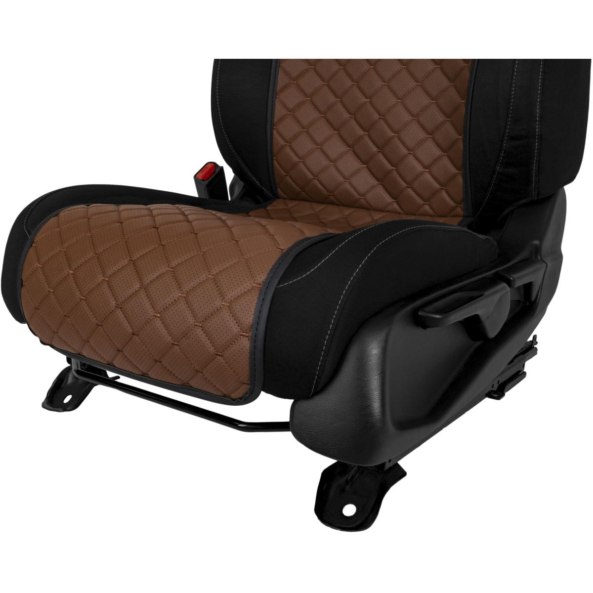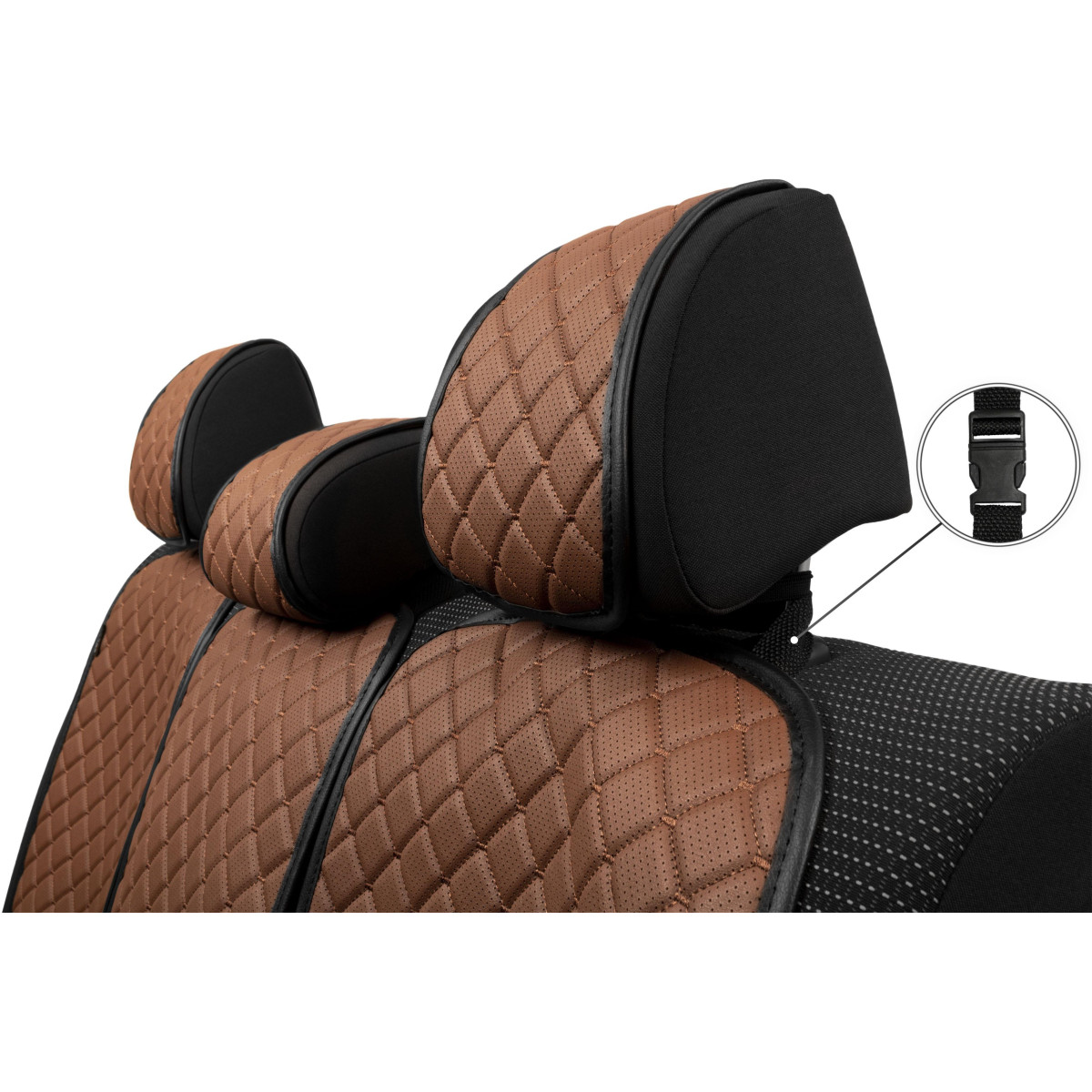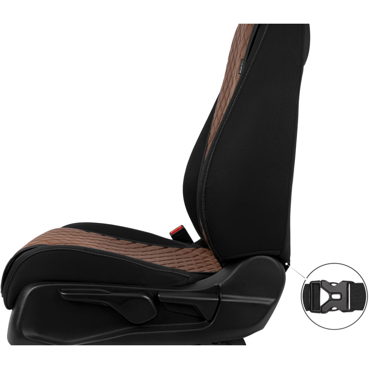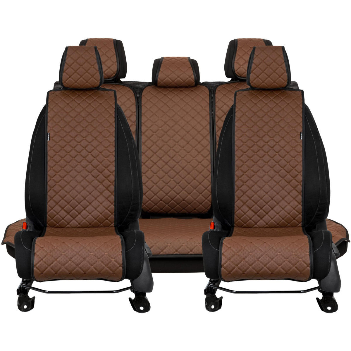 Sėdynės užvalkalų komplektas EVAtech ECO Basic, 3 vnt. - ruda / juodi kraštai / rudos siūlės