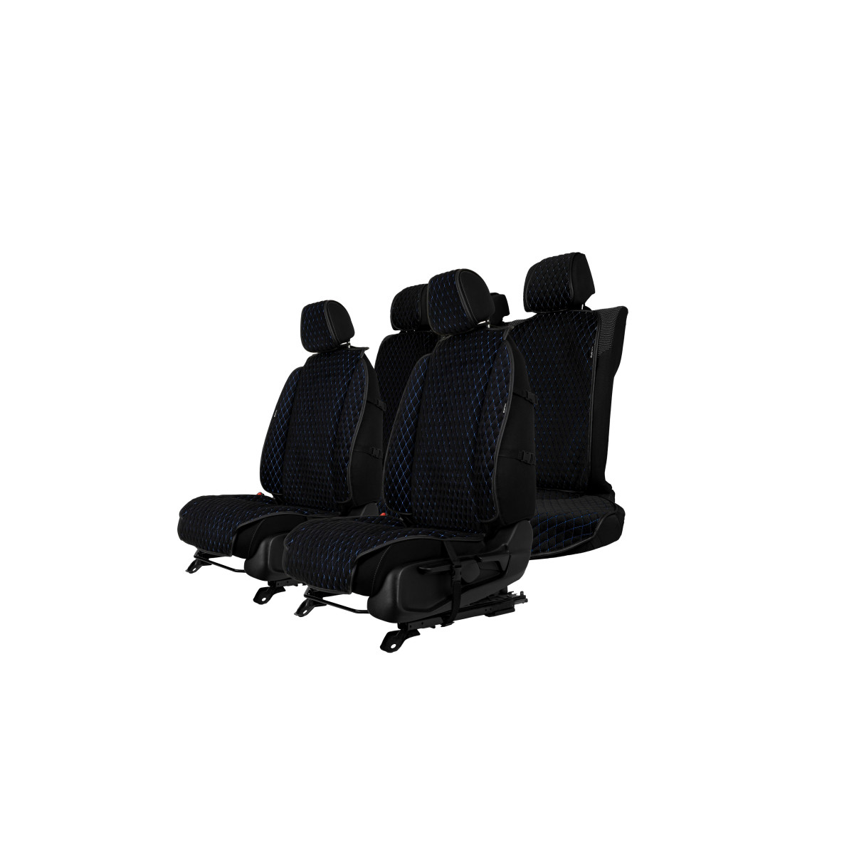 Sėdynės užvalkalų komplektas EVAtech Max, 3 vnt. - juoda / juodi kraštai / mėlynos siūlės