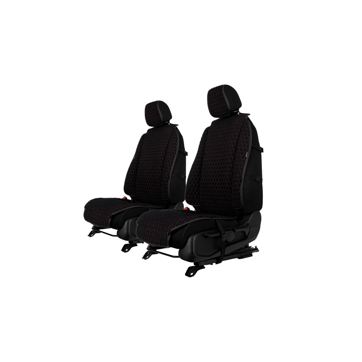 Sėdynių užvalkalai EVAtech Max, 2 vnt. - juoda / juodi kraštai / raudonos siūlės