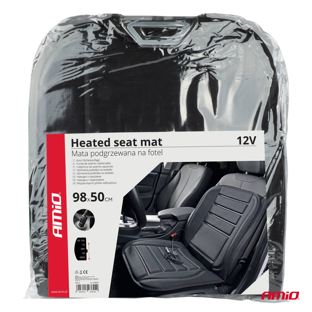 Šildomas sėdynės kilimėlis 98 x 50 cm, 12V DC - juoda