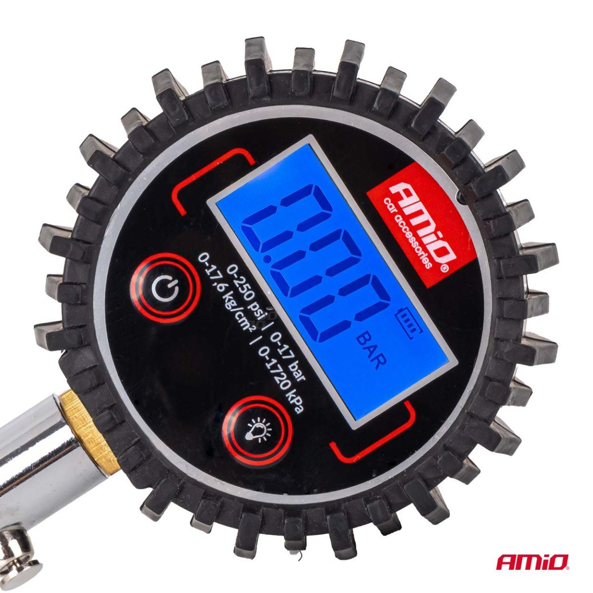 Skaitmeninis manometras su 30 cm žarna ir išleidimo vožtuvu 17 bar AMIO-04465