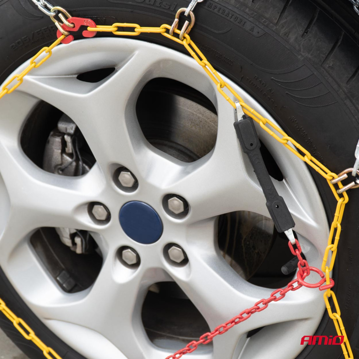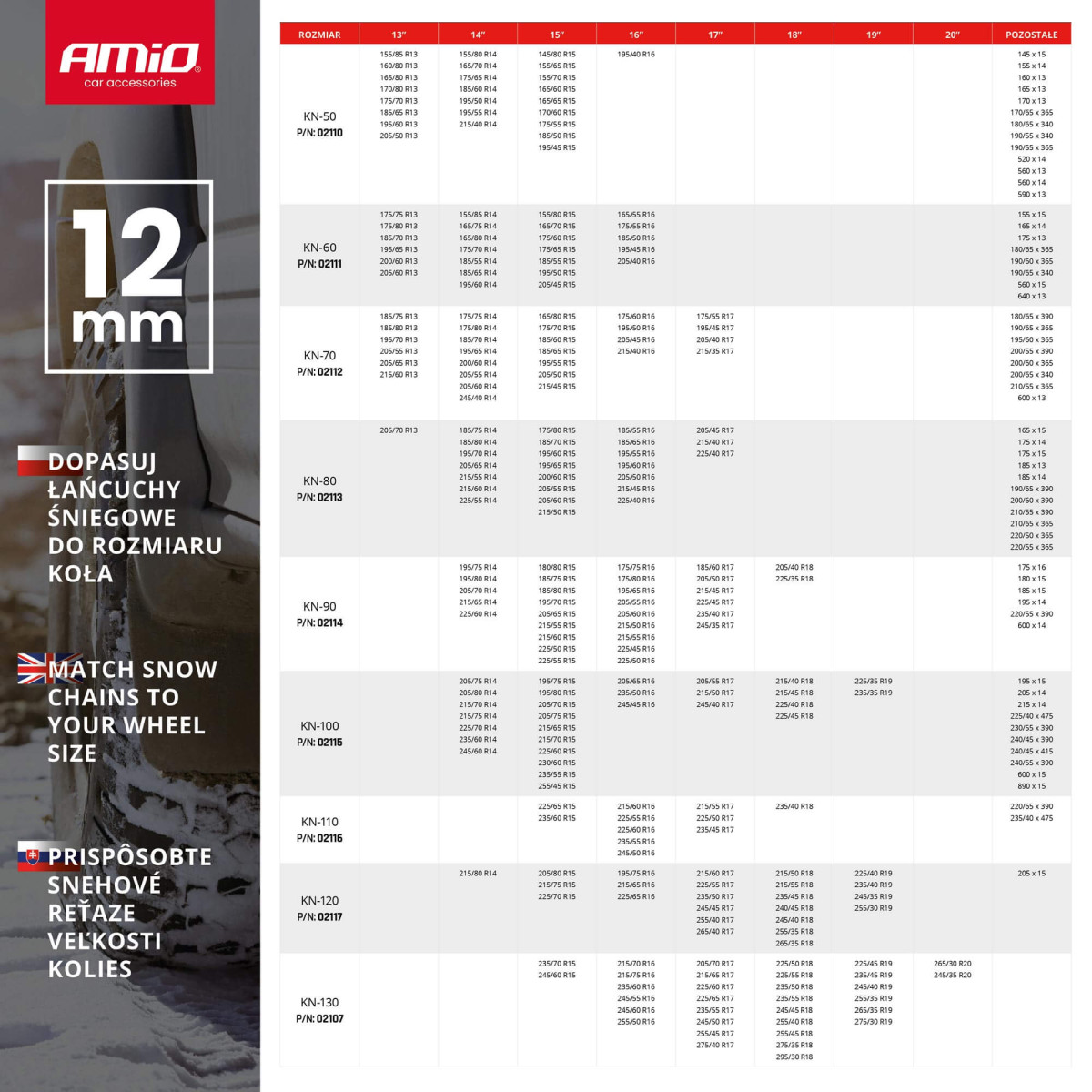 Pagaminta iš grūdinto plieno su asimetriniu, rombo formos grandinės raštu, kuris pagerina ratų sukibimą su apsnigta arba apledėjusia kelio danga. Tvirti, kvadratinio skerspjūvio 12 mm aukščio nareliai užtikrina ilgaamžiškumą ir patikimumą net sudėtingomis žiemos sąlygomis.