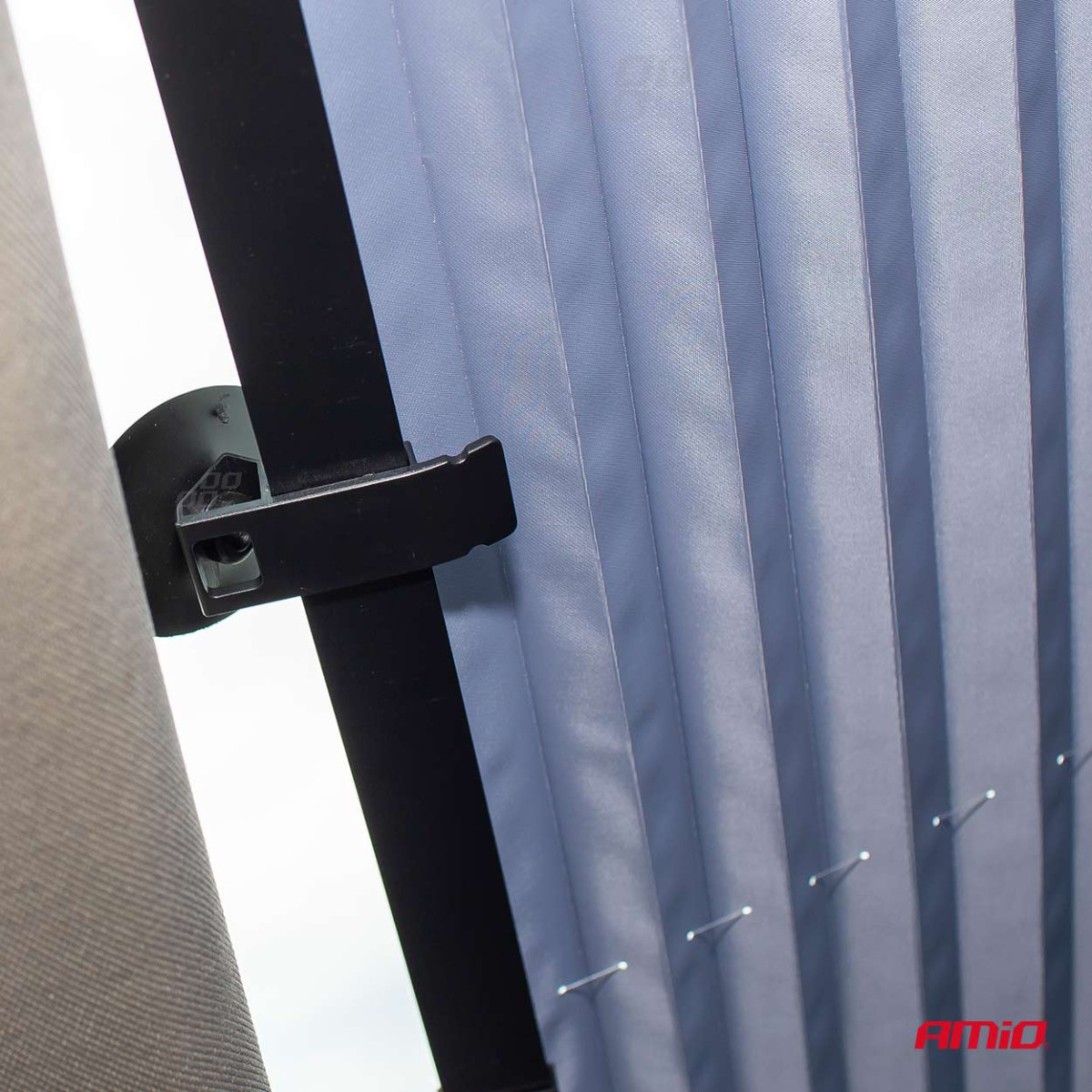 - Pakanka pritvirtinti vieną pusę prie stiklo naudojant komplekte esančius siurbtukus, ištempti ir pritvirtinti analogiškai iš kitos pusės.