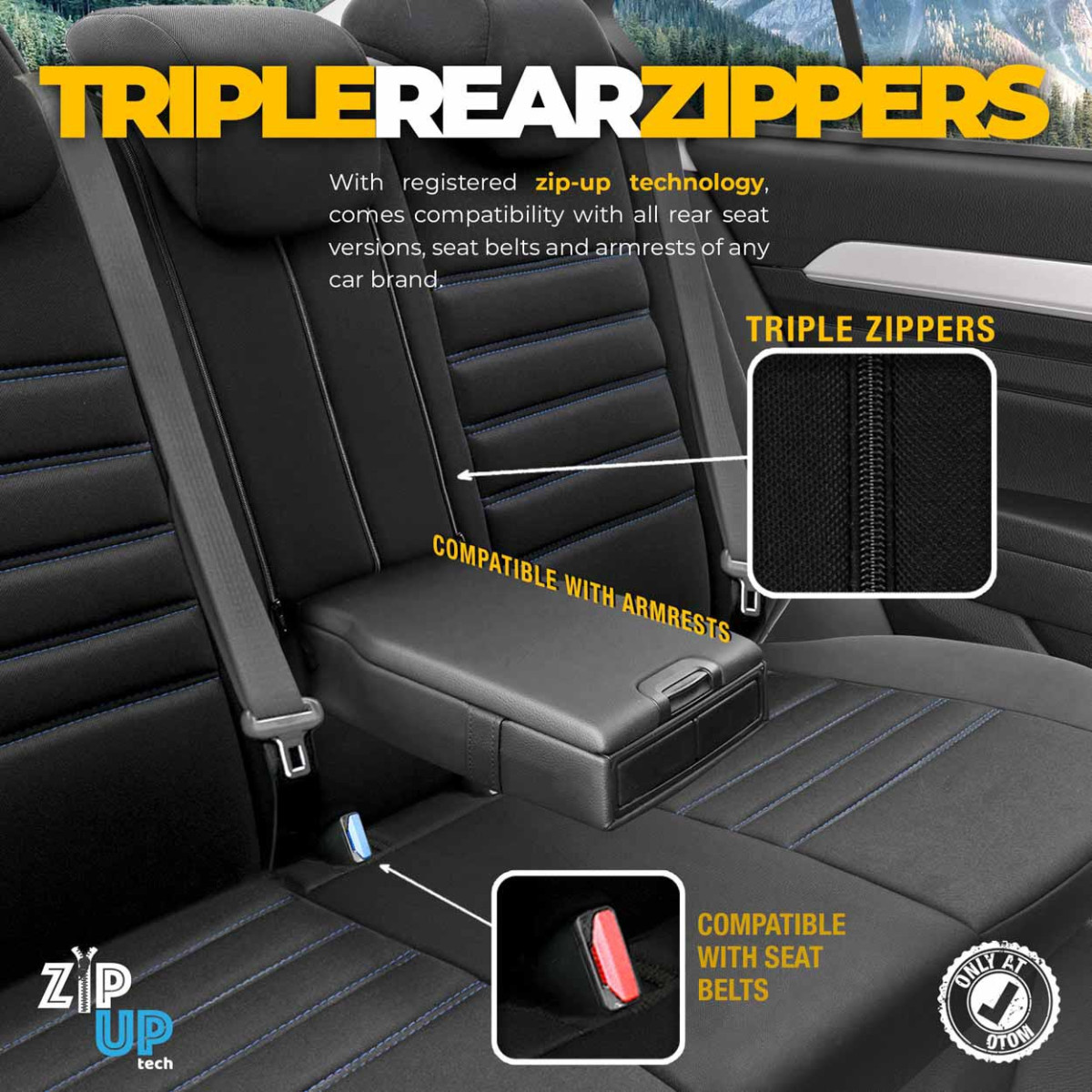 Universalūs sėdynių užvalkalai OTOM, INDIVIDUAL - juoda / mėlyna
