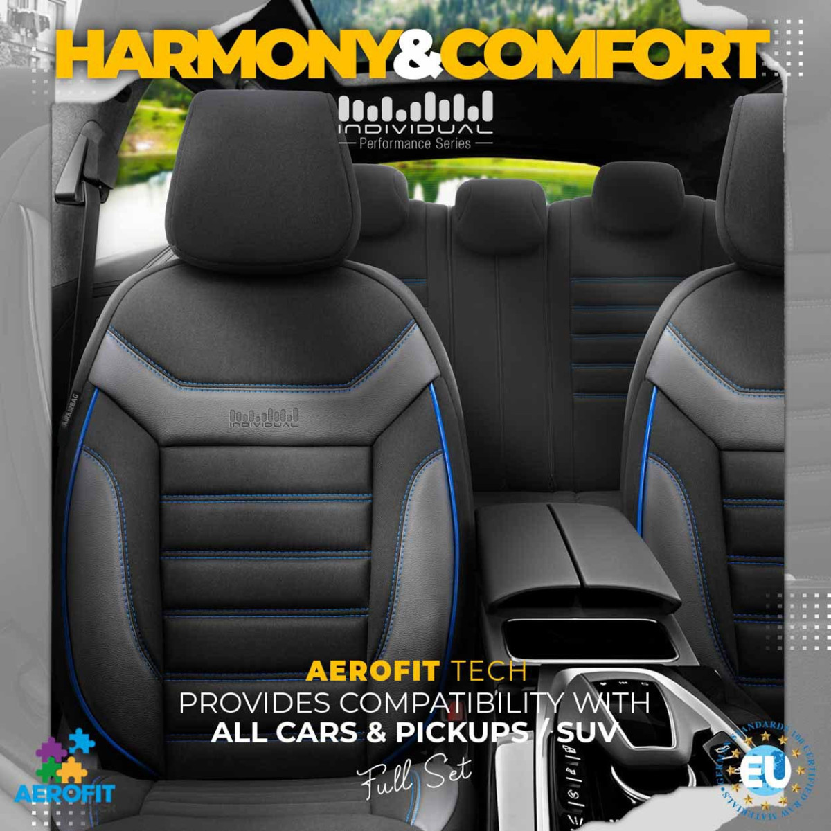 Standartiniuose užvalkaluose įrengta sertifikuota AIRBAG siūlė, todėl jie pritaikyti automobiliams tiek su šoniniais oro pagalvėmis sėdynėse, tiek su standartinėmis sėdynėmis. Dėl specialaus siūlo konstrukcijos užvalkalai visiškai apgaubia sėdynes, nesutrikdydami oro pagalvių veikimo.
