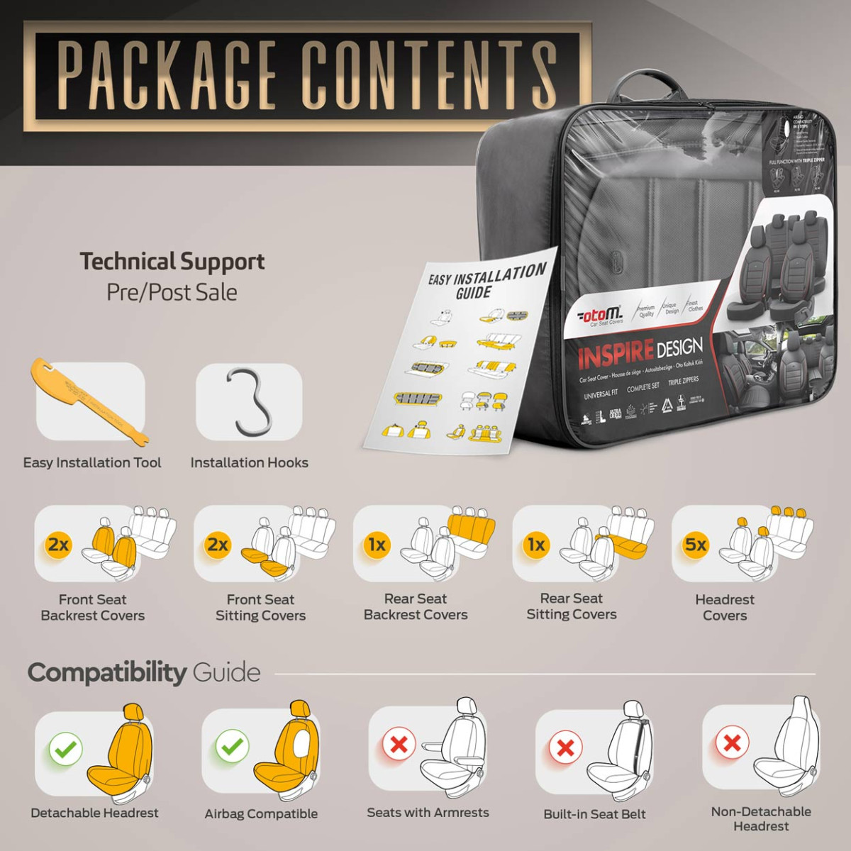 Universalūs sėdynių užvalkalai OTOM, INSPIRE - juoda, eko oda