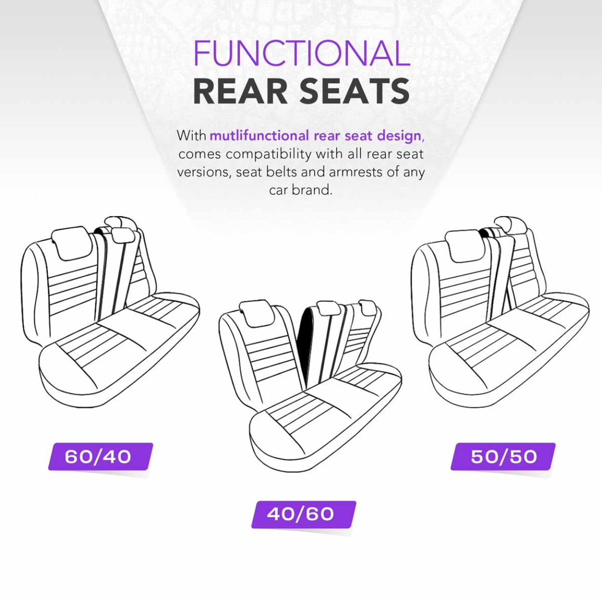 Užvalkalai tinka daugumai rinkoje esančių sėdynių (galinės sėdynės užvalkalas pilnai, be užtrauktukų).